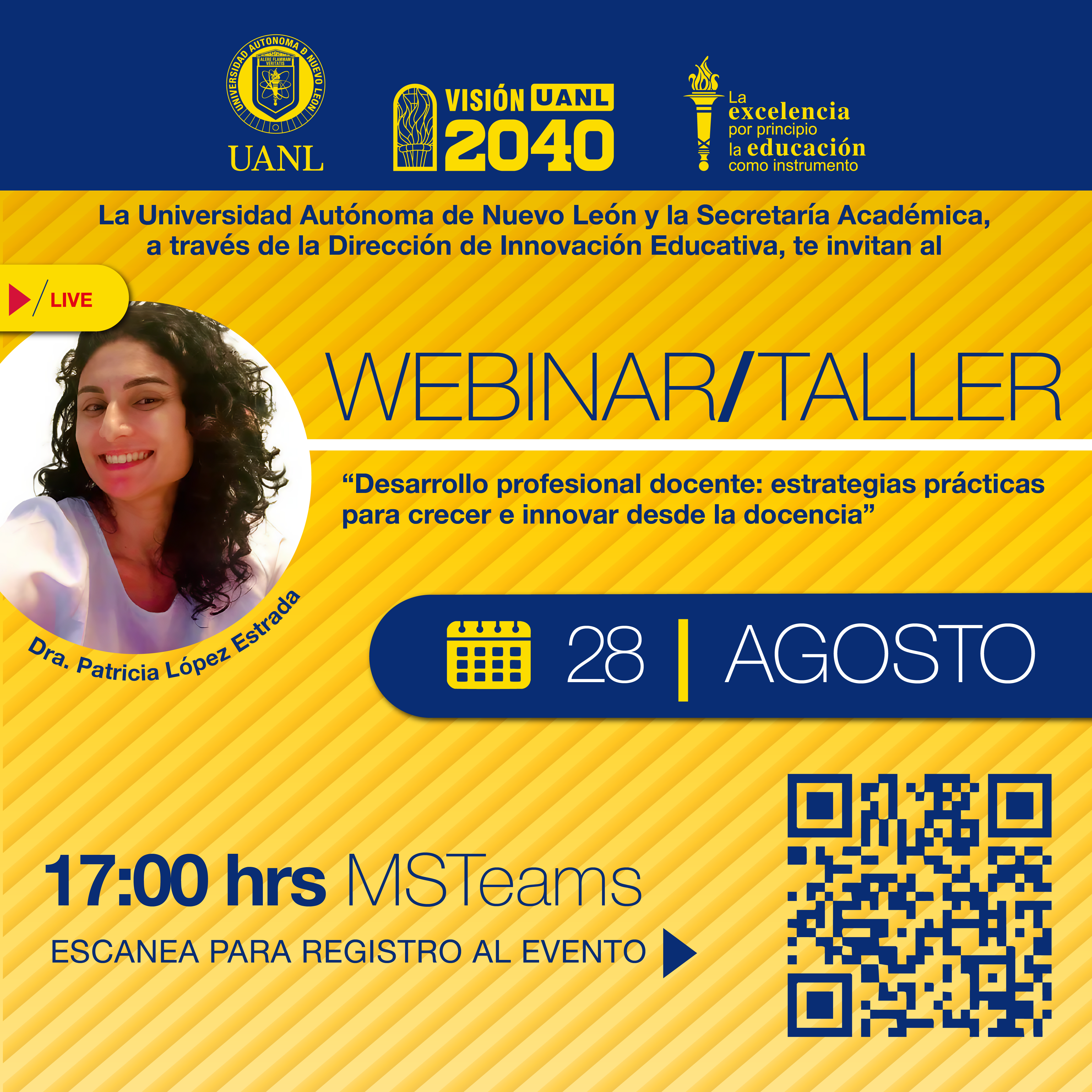 26 Ago Webinar – Taller “Desarrollo profesional docente: estrategias prácticas para crecer e innovar desde la docencia”